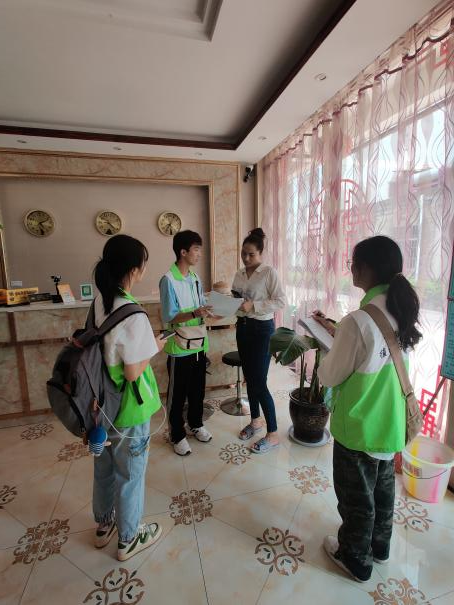 经过两小时的车程,实践团队到达目的地澄江市。团队走访的第一站是肖咀新村,它是经由原本距离抚仙湖最近的两组居民搬迁后形成的一个新村。虽然只有一条公路之隔,但今昔对比,村民的生活已然发生了翻天覆地的变化。该村住户为81户,搬迁后土地流转,主要栽种蓝莓、烤烟、水稻、花材等,大部分村民将住房改为民宿、餐馆等,积极发展旅游业和餐饮业。实践团队通过采用深入走访、问卷调查的方式,对该村组村民进行抚仙湖“四退三还”、美丽乡村建设等方面的乡情调研。同时大力宣传创新、协调、绿色、开放、共享的发展理念,呼吁村民加大环境保护力度,引导其积极配合当地持续推进绿色发展,加快建设美丽乡村。