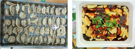 在后厨是大家忙碌的身影,在餐厅是同学们欢快的笑声,老师放下平日工作的压力,跟同学们积极互动,有说有笑,拉拉家常,给寒冬增添了几分温暖,让冬至变得更加意义非凡。洗菜、切菜、和面、擀皮、包饺子,大家充分发挥个人优势,在各个环节都大展身手。同学们在享用美食的同时也感受了不同地区之间的饮食差异,更是将饺子包出各种花样,在享受美食的同时成就了一场视觉盛宴。