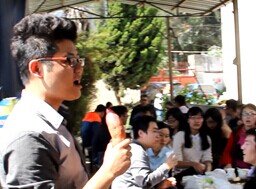 在经过进30分钟的准备,同学们都基本开始了自己组的烧烤,这时候我们开始进行第二环节,分组表演。我们一共分了七个小组,每个小组出一个自己组别的特色节目。同学们一开始还比较羞涩,但是在一组一组准备节目的过程中,同学们都在自己的小组火热的准备着,有练家子的,有跳舞的,有唱歌的,有说相声的,大家“八仙过海、各显其能”,这种陌生人分组表演的形式不光体现了同学们的勇气,更体现了团队合作精神。