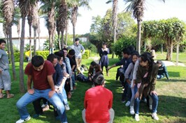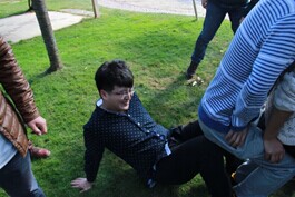 午饭后各个小组又进行了自己组的小游戏:三国杀、杀人游戏、真心话大冒险等一些列游戏如火如荼的进行着,进一步加深了同学之间的感情。下午三点左右,同学们一起在大自然风情园的沙滩草地上进行了团队协作游戏。游戏分为四个环节。找花色——站着蹲——“绝对不能做”——颁奖环节。环环相扣,每一个环节都是团队配合的体现。