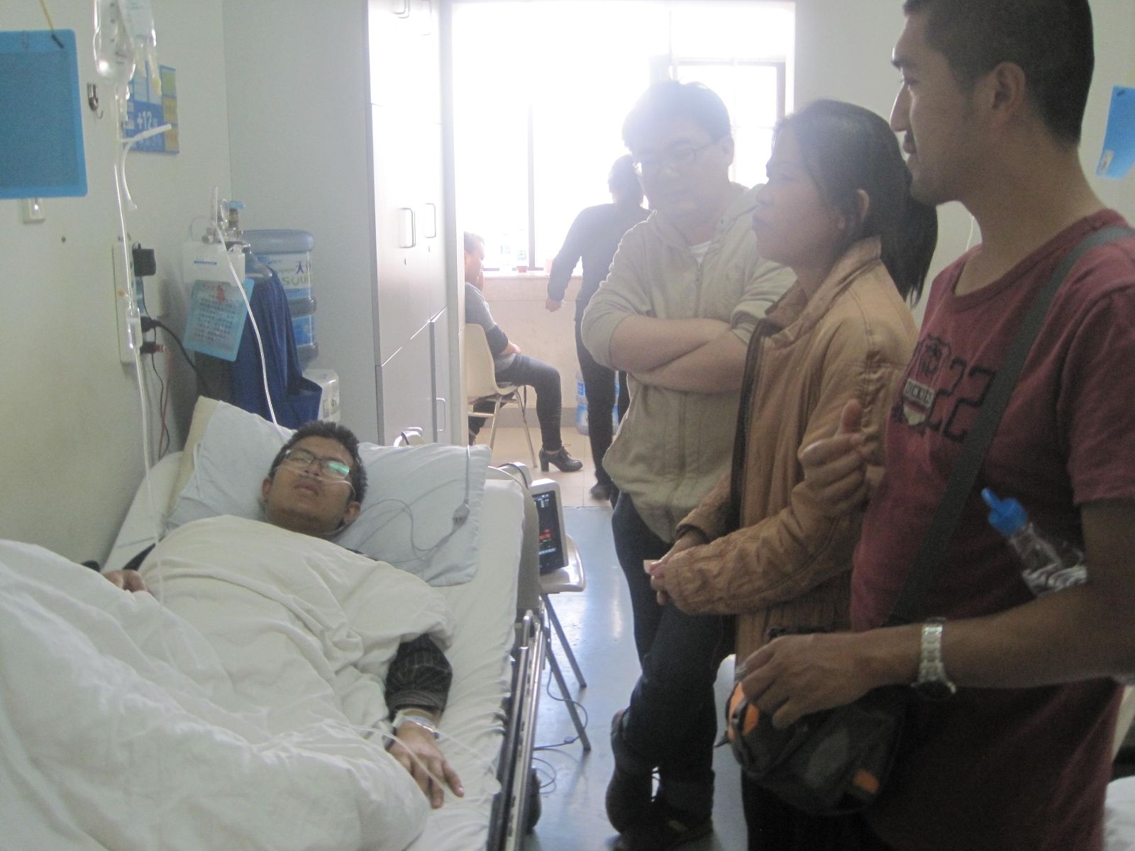 13级博士研究生张彧同学,因患有肺炎而到云大医院接受治疗已有一段时间。老师同学们听说后都非常担心,纷纷希望能够去看望他。但为了他能静养治疗,由班主任陆春明老师,团委书记张晓明老师以及研究生会主席吕朝相同学作为代表,一起带着大家的祝福和关心,去到他的身边。张彧同学的父母在病床边一直守候着他,对于大家的关心都十分感动。老师和同学都纷纷希望张彧能够早点好起来。