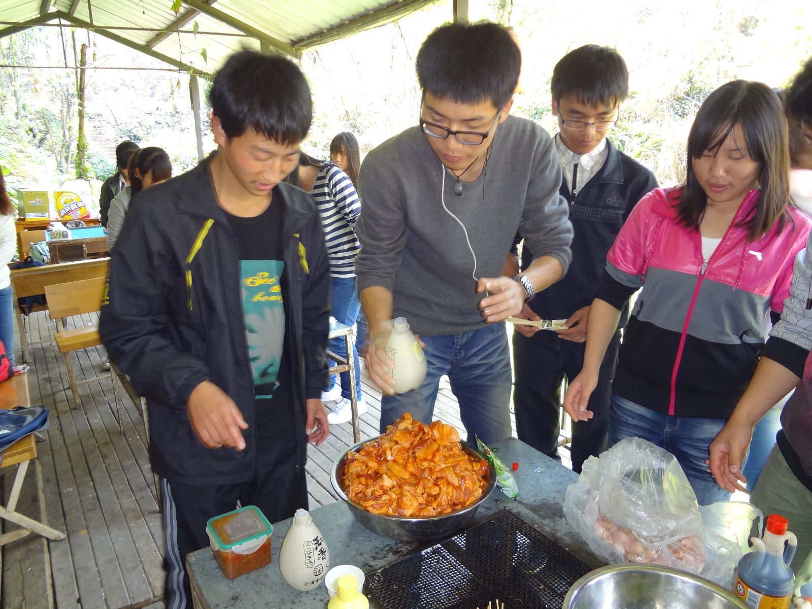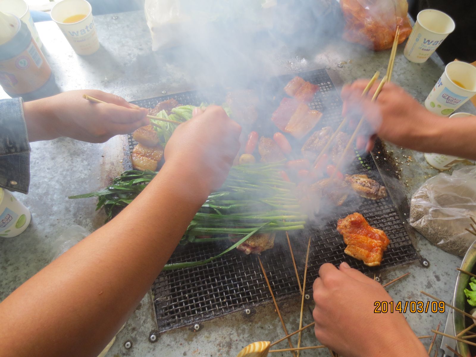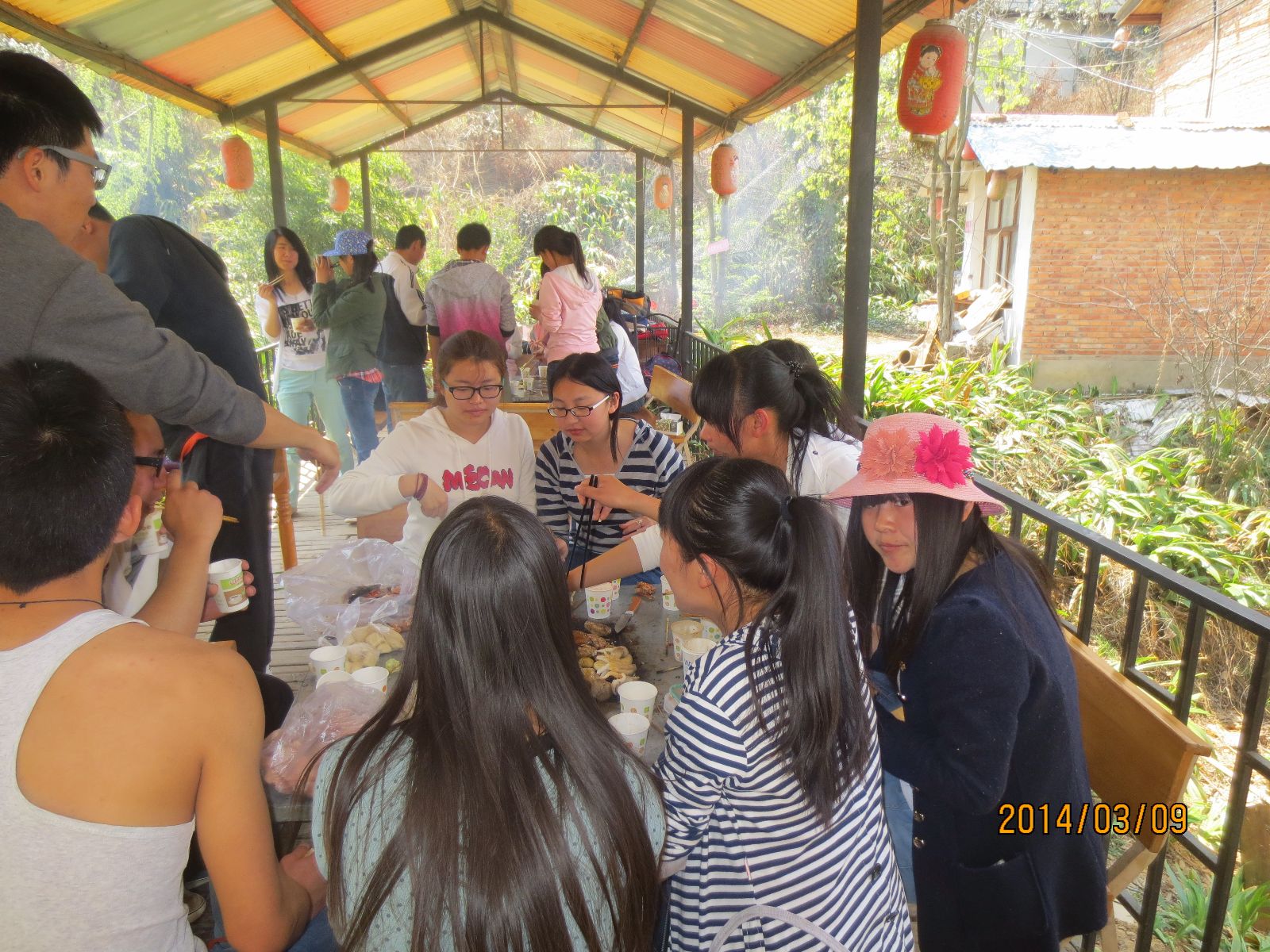 阳春三月,清风凉爽,2014.3.9(周日)这一天,yl8cc永利13级植保一班的全体同学走进轻盈的春季,最快来到果香园,开展了一次大型户外烧烤活动。活动从12点正式开始,伴随着春日里爽朗的阳光,和煦的春风,在下午五点半左右,活动在同学们的欢声笑语中落下帷幕。中午10点,13级植保一班全体成员50余人与我们邀请的班主任在4栋宿舍边集合。由于路途较远,我们乘车前往此行的目的地——果香园。大约十二点,全体人员到达烧烤地点后,就加入到我们的先遣队伍分发食材的行动中。很快,食材分发完毕,各组同学拿着自己组的食材兴冲冲地回到了自己的烧烤炉边,一组一组的重复着相同的动作:一个同学把食材洗净,另一个同学又迅速用铁叉将其穿起来。好一派繁忙的景象!忙毕,就正式进入了烧烤环节,大家围坐在火炉旁边,一人拿着一个铁叉,
