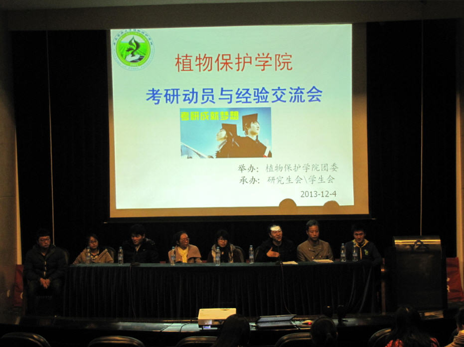 为增强应届本科同学考研的信心,2013年12月4日晚,研究生会选拔组织学院研究生同学在学院报告厅为本科同学举行"考研动员与经验交流.