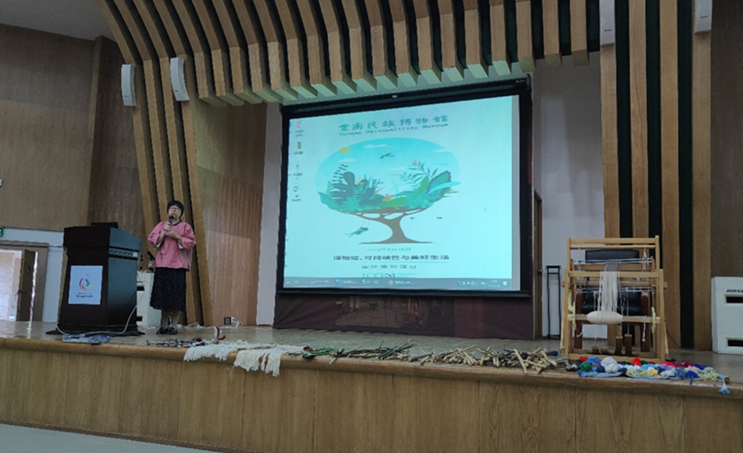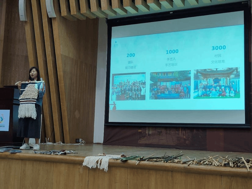 首先,白族扎染技艺州级非物质文化遗产代表性传承人、大理市蓝续文化发展有限责任公司主理人张翰敏进行了题为“让‘非遗’绽放时代芳华---老员工返乡创业 非遗赋能美好生活”的演讲,分享了其团队从北京辞去稳定工作回到家乡大理周城村传承白族传统独特扎染文化和技艺的故事,展现了民族“非遗”的独特魅力。现场同学认真聆听,深受感染。